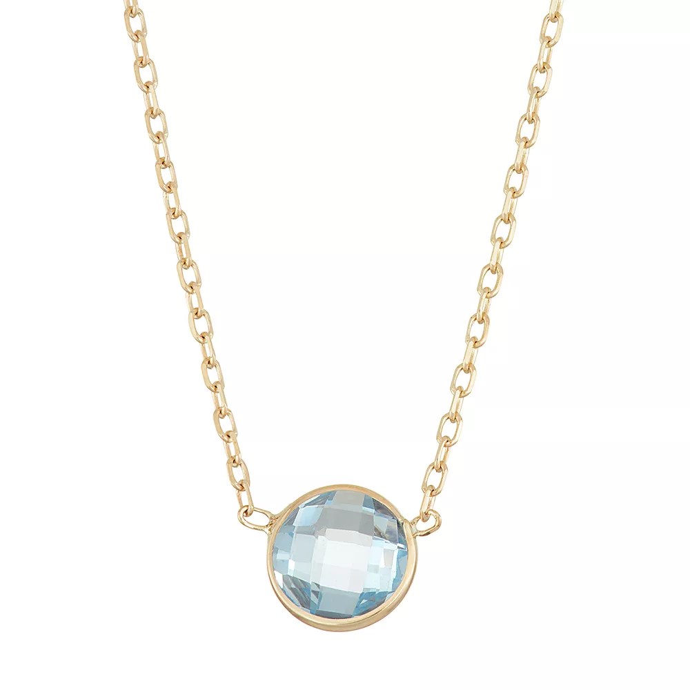 Adorned with an illuminating lab-created aquamarine gemstone, this 10k gold circle pendant offers alluring appeal.