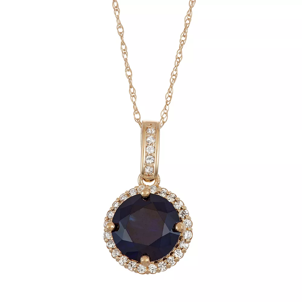 Dazzling with lab-created blue and white sapphire gemstones, this halo pendant offers sophisticated styling.