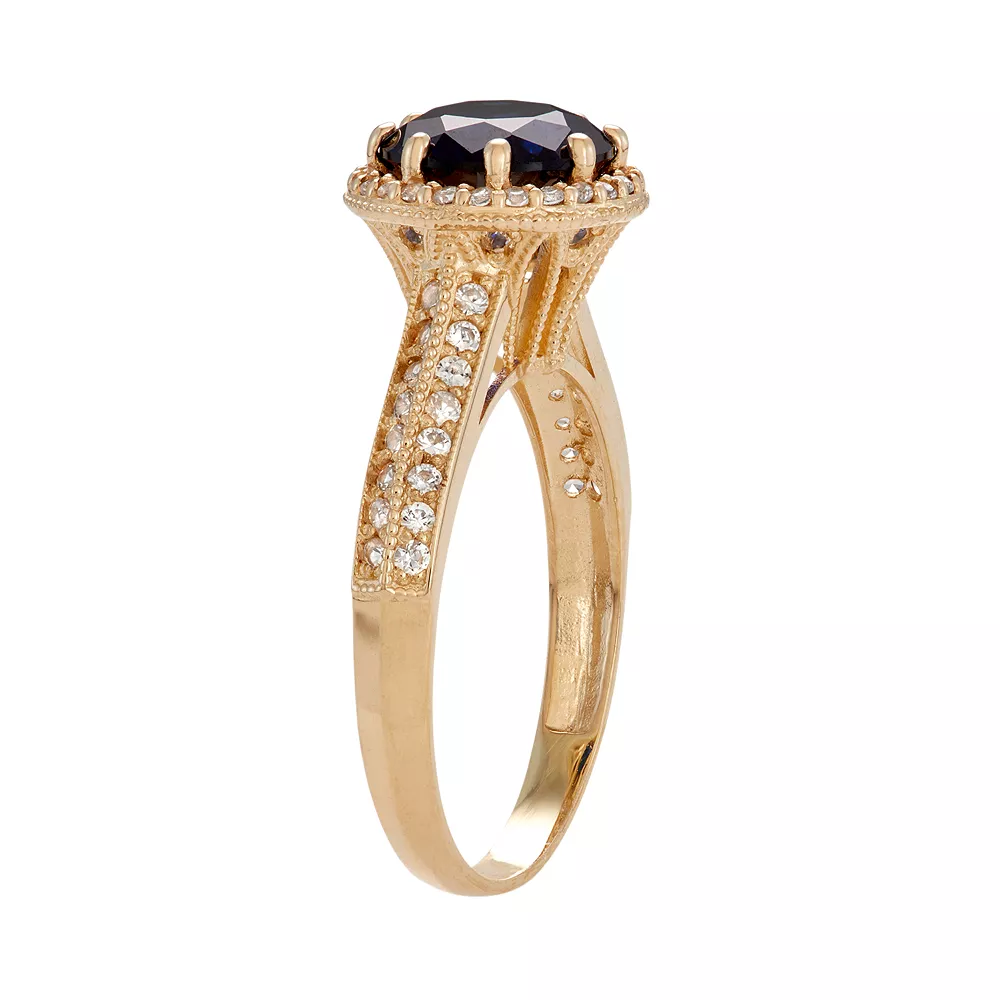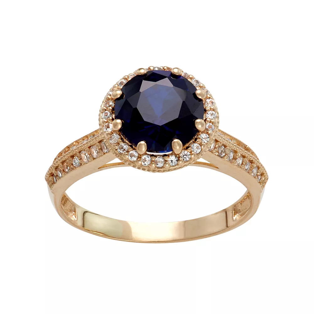 Add a touch of timeless style to your ensemble with this gorgeous lab-created blue and white sapphire halo ring.