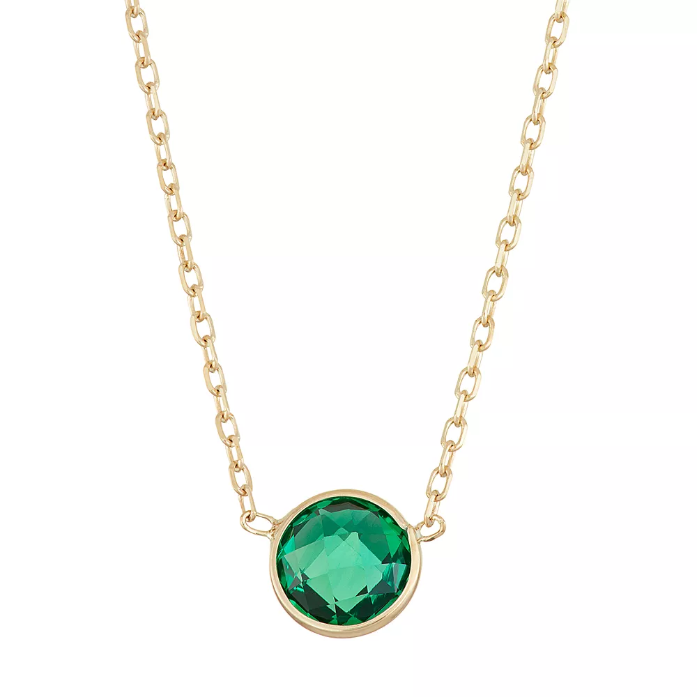 Adorned with an illuminating lab-created emerald gemstone, this 10k gold circle pendant offers alluring appeal.