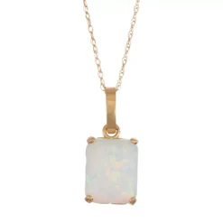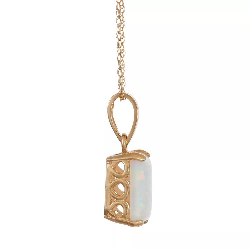 Shimmering with a lab-created opal stone, this 10k gold pendant offers timeless beauty.