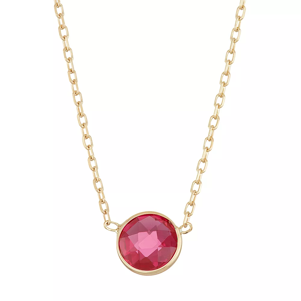 Adorned with an illuminating lab-created ruby gemstone, this 10k gold circle pendant offers alluring appeal.