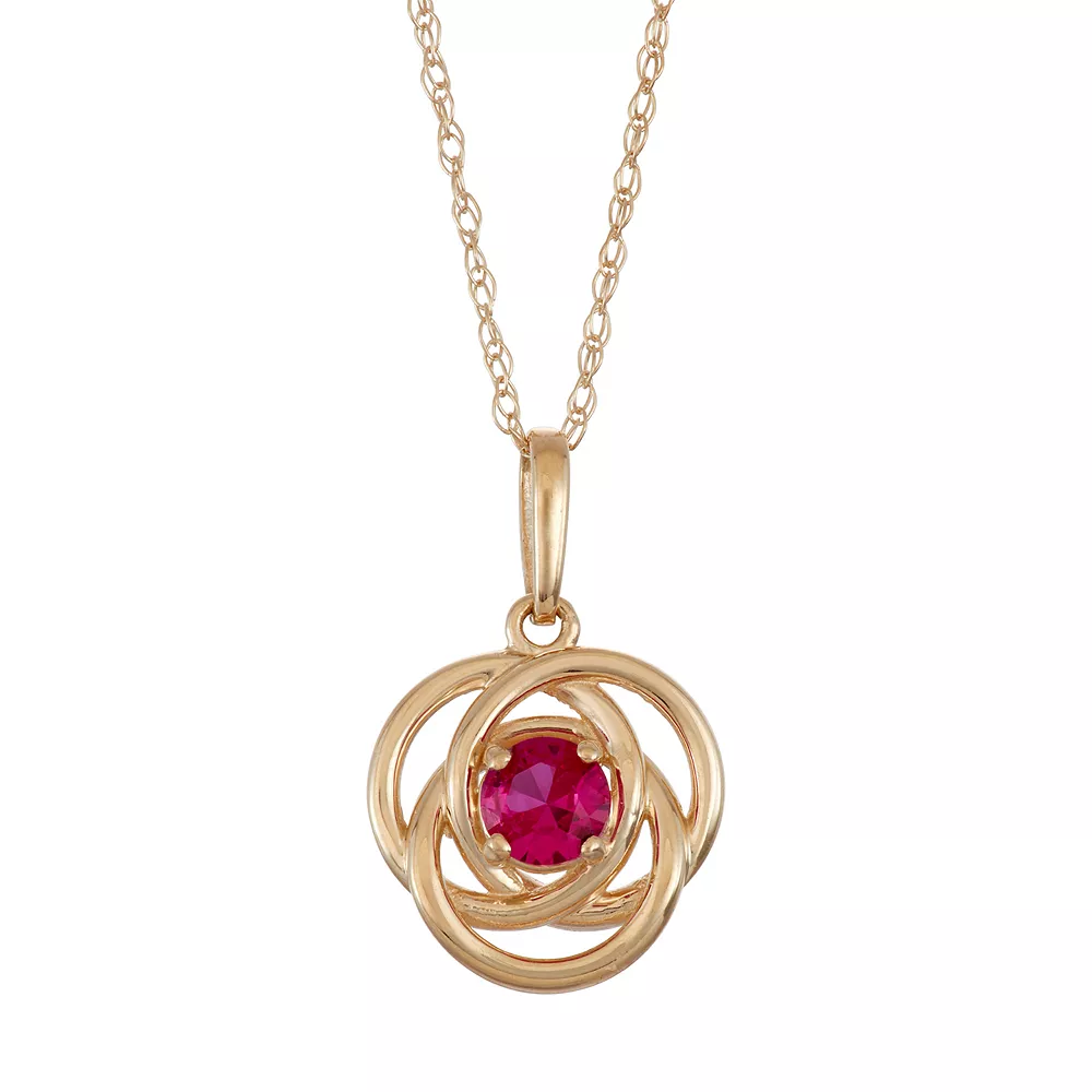 Enhance your ensemble with the shimmering style of this lab-created ruby knot pendant.