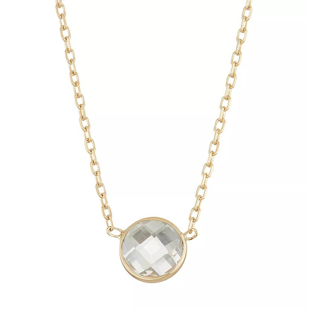 Adorned with an illuminating lab-created white sapphire gemstone, this 10k gold circle pendant offers alluring appeal.