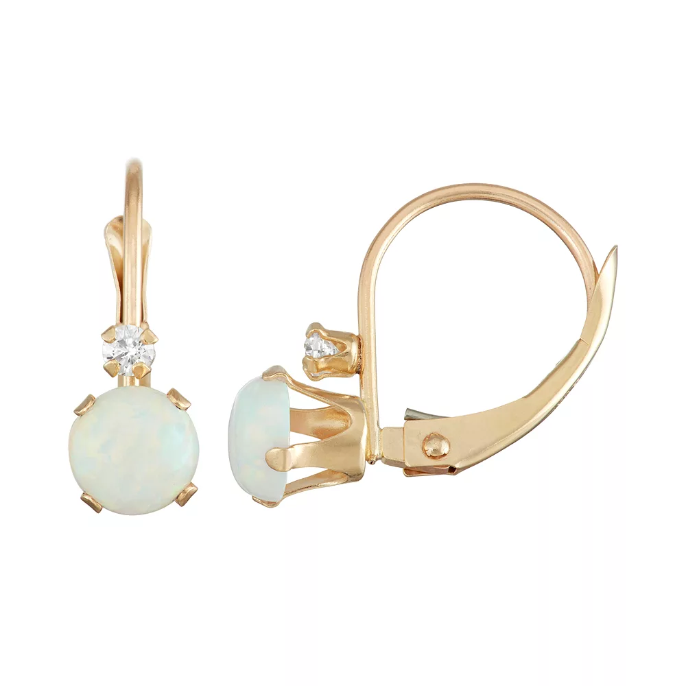Decorated with lab-created opal stones and white zircon accents, these 10k gold leverback earrings Decorated with amethyst stones and white zircon accents, these 10k gold leverback earrings lend a stylish finishing touch to your look.