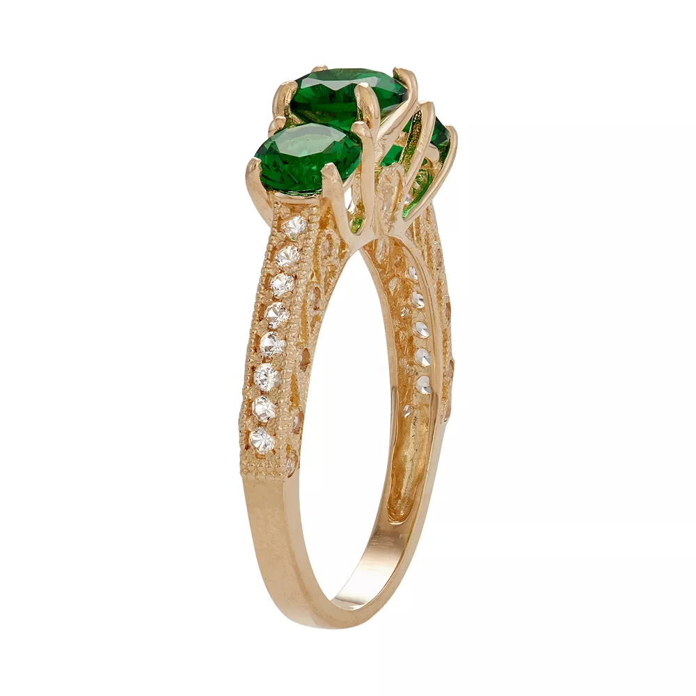 Sophisticated style abounds with this simulated emerald and lab-created white sapphire 3-stone ring.