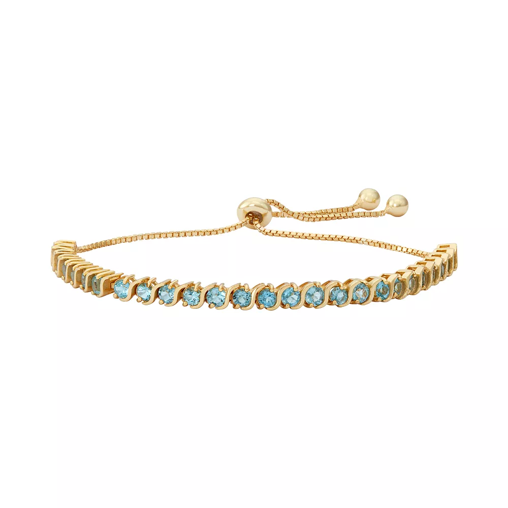 Featuring round-cut genuine blue topaz stones and S links, this adjustable lariat bracelet exudes a radiant look.