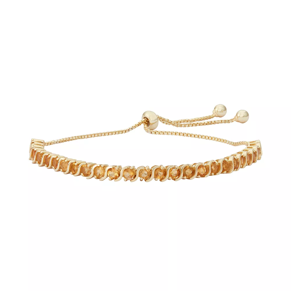 Featuring round-cut genuine citrine stones and S links, this adjustable lariat bracelet exudes a radiant look.