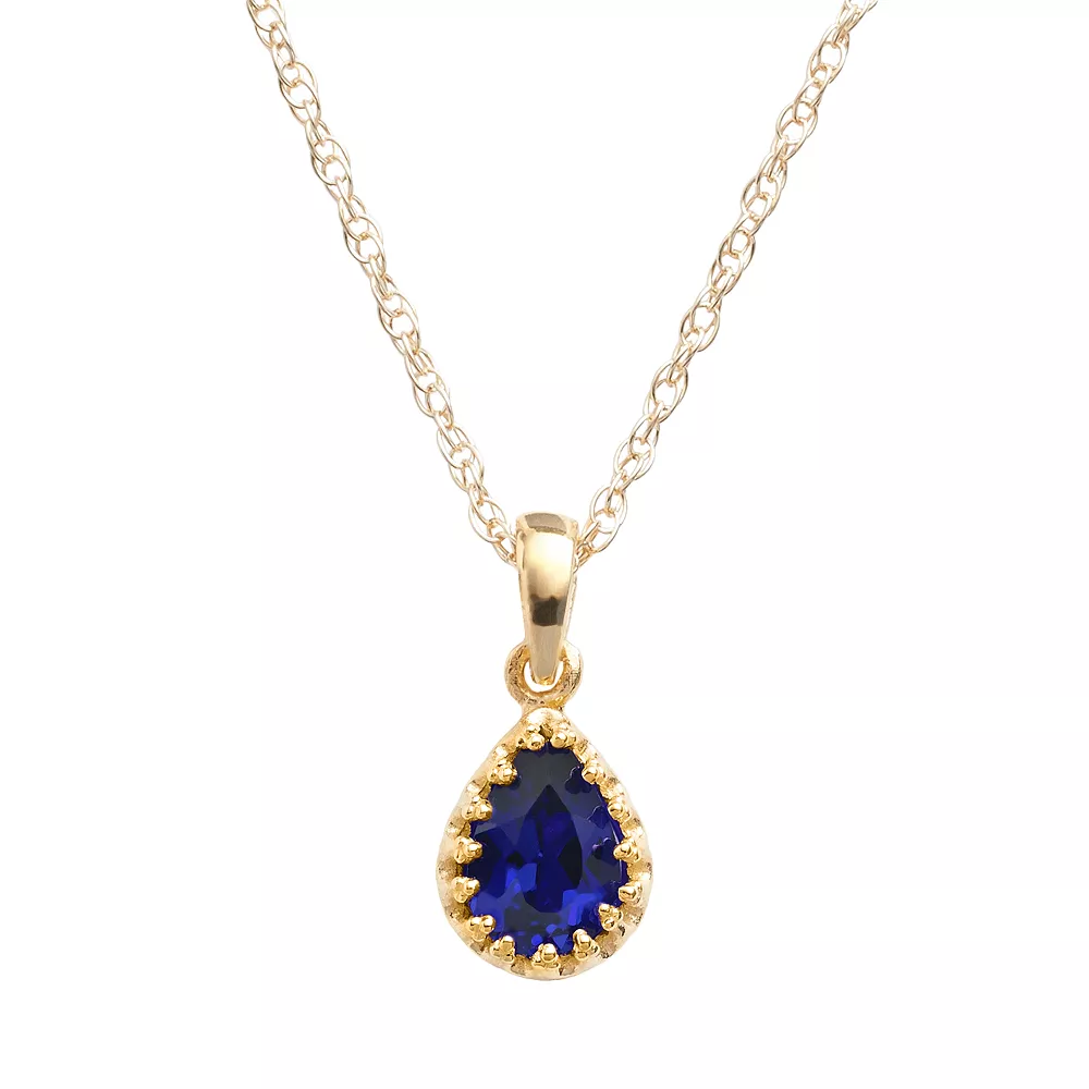 A stunning pear-cut, lab-created sapphire stone makes this pendant a must-have.