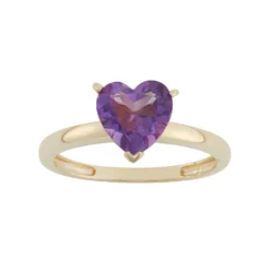 A heart-cut amethyst stone gives this 10k gold ring feminine beauty.