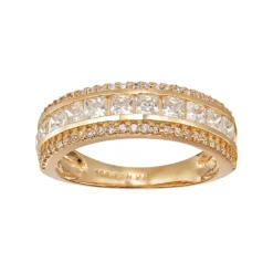 Add dazzling beauty to your ensemble with this cubic zirconia ring. Princess- and round-cut stones in a three-row design make it a breathtaking choice.