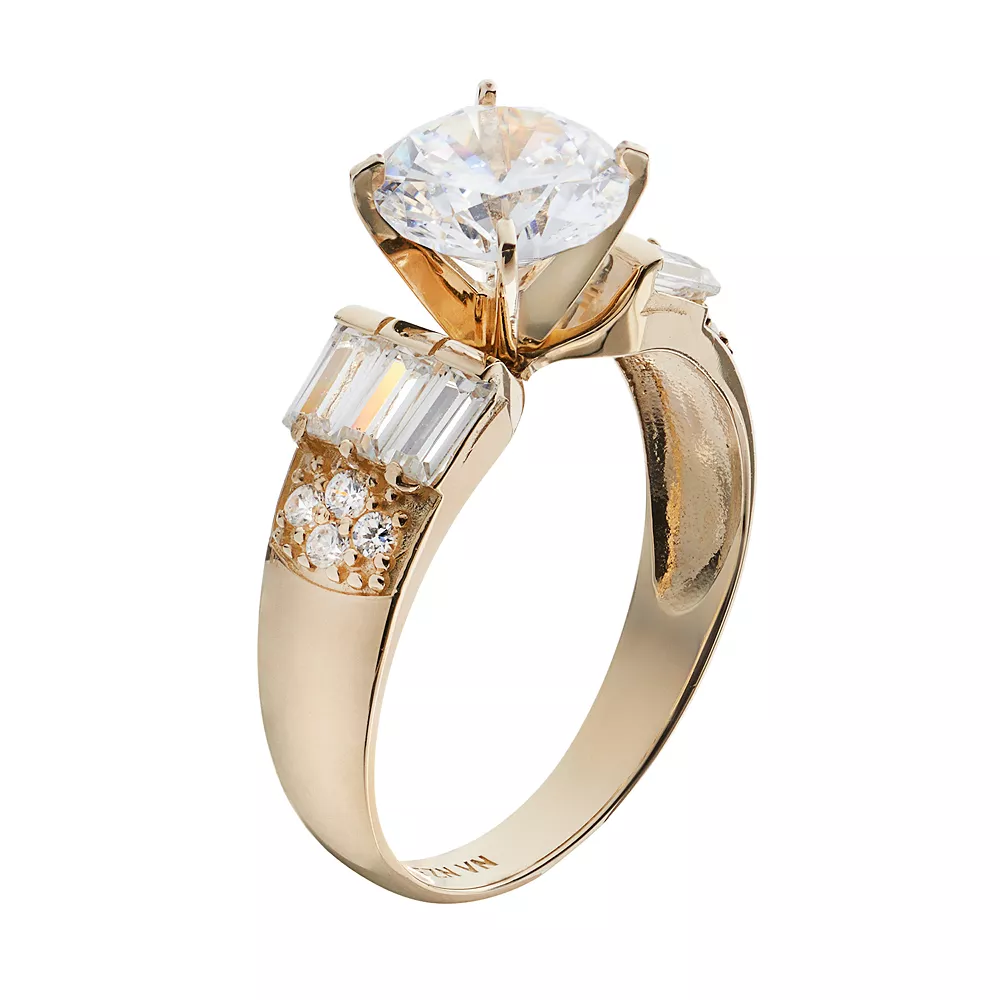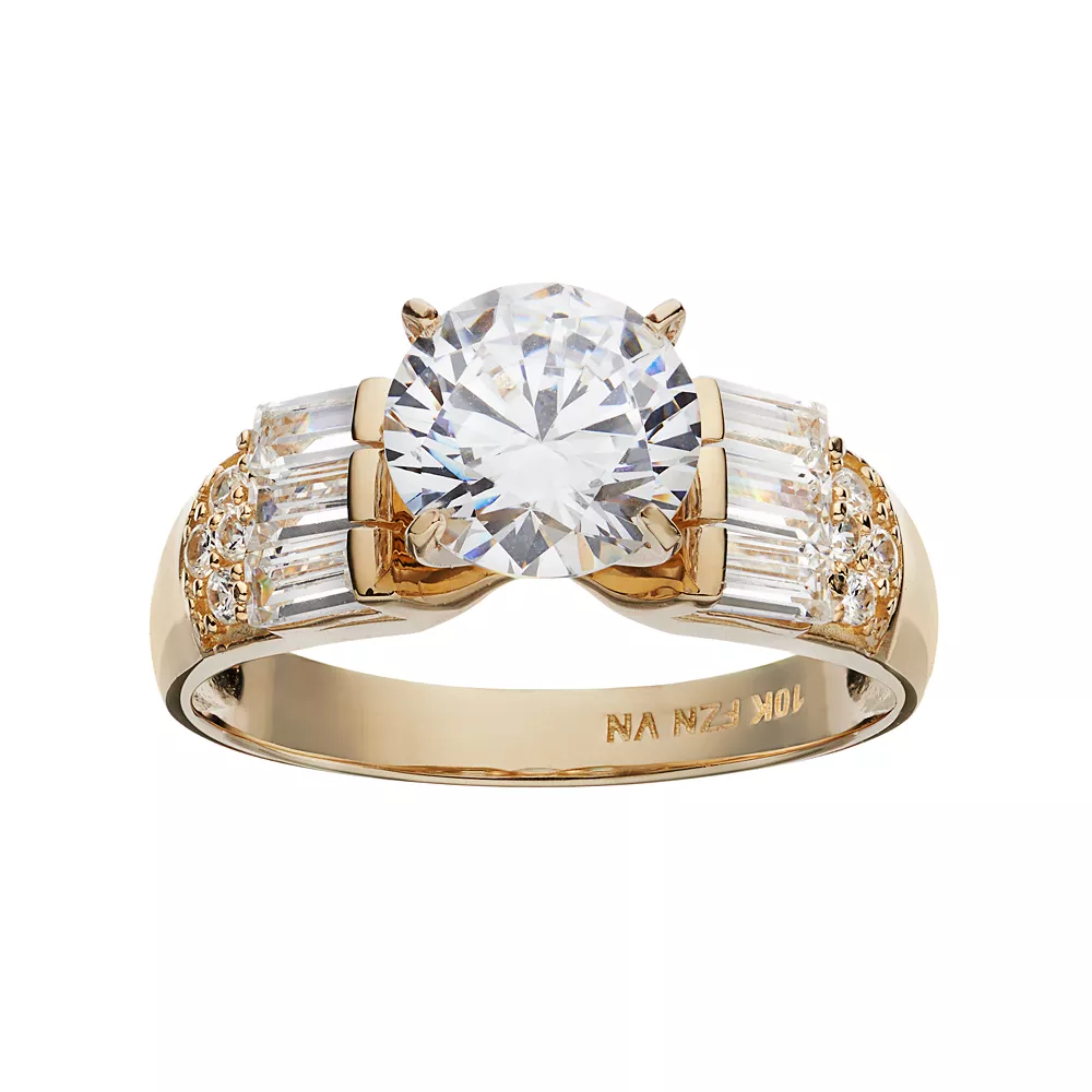 Add unique sparkle to your look with this 10k gold ring. Round-cut cubic zirconia stones and cubic zirconia baguettes make this ring a one-of-a-kind beauty you’re sure to love.