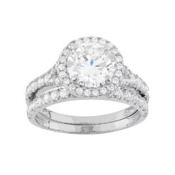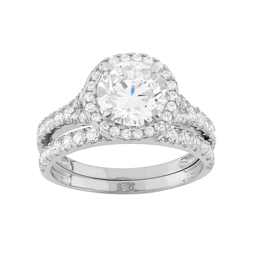 This 10k gold engagement ring set is the perfect way to express your love. Round-cut cubic zirconia stones create a breathtaking halo design that’s sure to make her heart skip a beat.