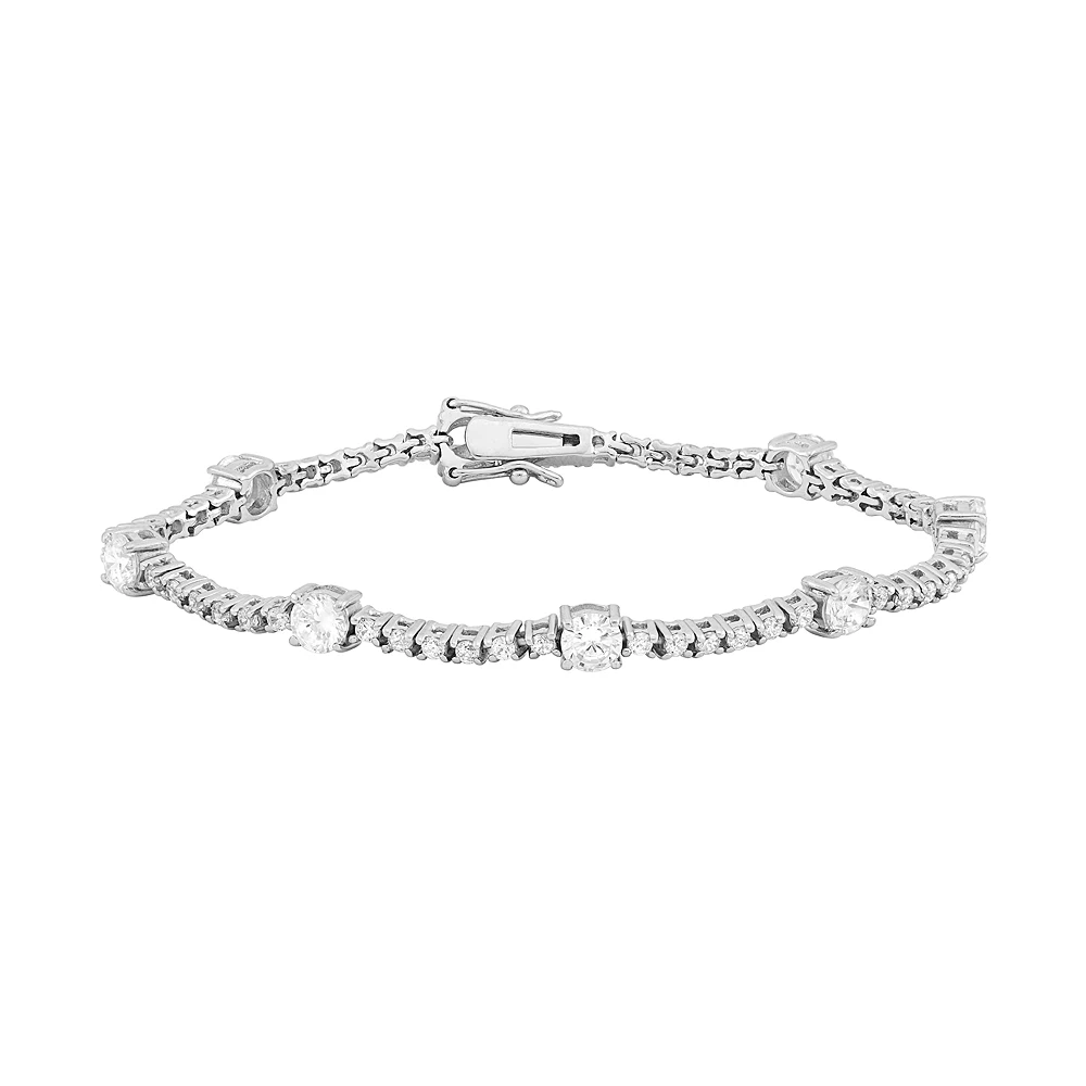 Adorned with various sizes of round-cut cubic zirconia stones arranged in a station motif, this sterling silver tennis bracelet makes a sophisticated accessory.