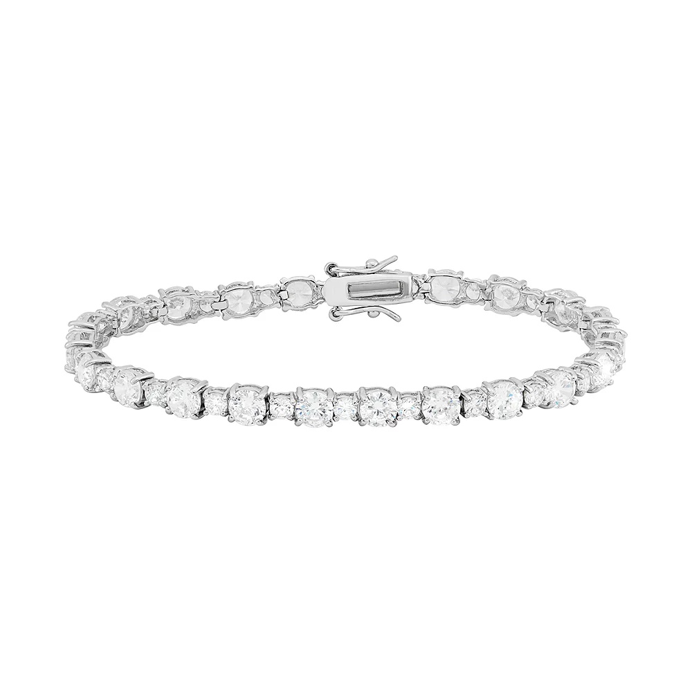 With alternating sizes of round-cut cubic zirconia stones, this sterling silver tennis bracelet dresses up your outfit with timeless appeal.