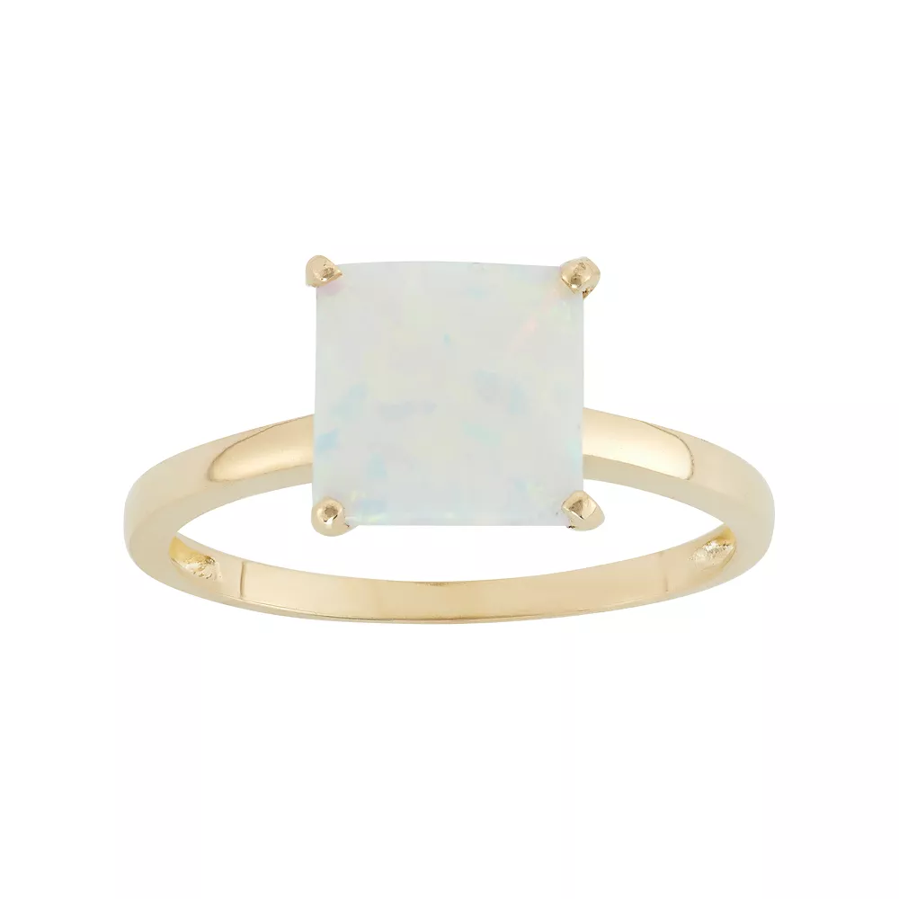Add stunning sparkle to your ensemble with this 10k gold lab-created opal ring.
