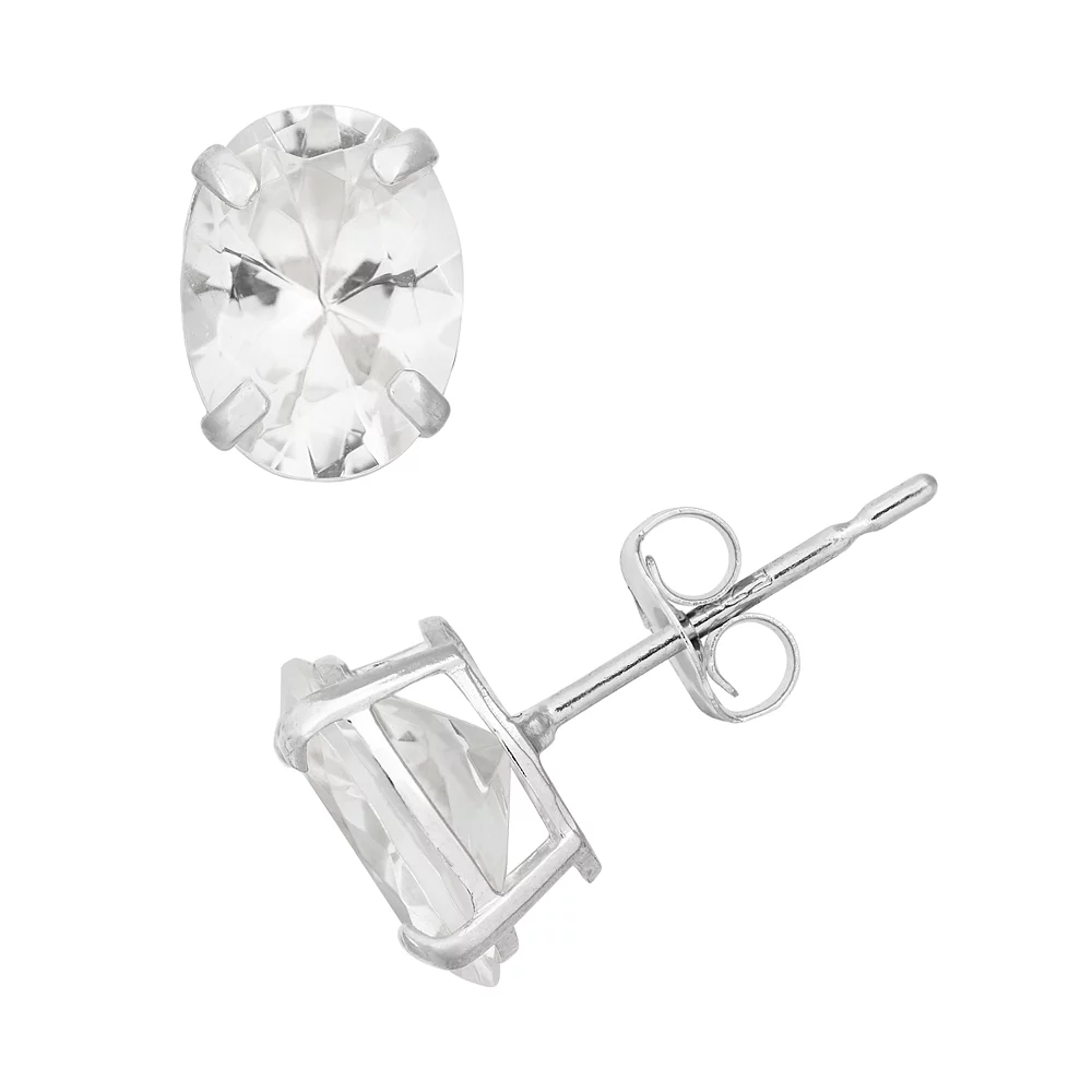 Sparkling oval-cut lab-created white sapphire stones make these 10k white gold stud earrings a dazzling choice.