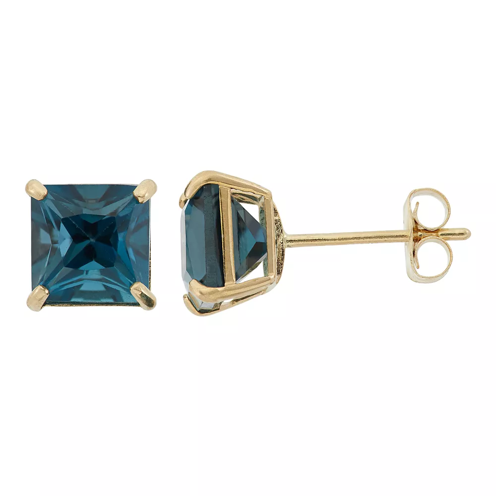 Princess-cut London blue topaz stones give these 10k gold earrings dazzling beauty.