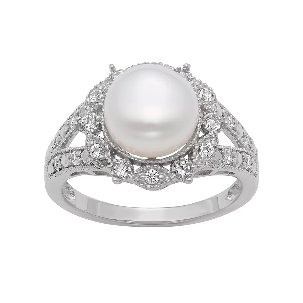 You’ll adore the breathtaking elegance of this freshwater cultured pearl and lab-created white sapphire ring.