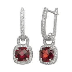 Adorned with garnet and lab-created white sapphire stones, these drop earrings are absolutely dazzling.