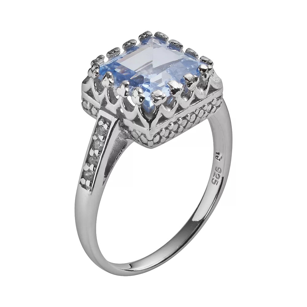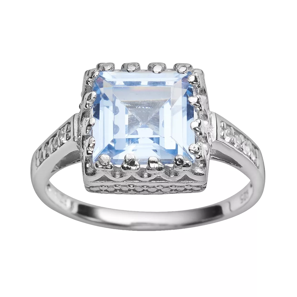 - Stone type: lab-created aquamarine, lab-created white sapphire