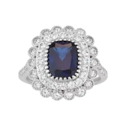 Add a touch of timeless elegance to your ensembles whenever you wear this lab-created blue and white sapphire halo ring.