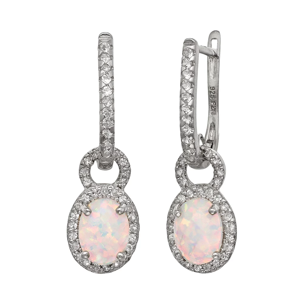Adorned with lab-created opals and lab-created white sapphire stones, these drop earrings are absolutely dazzling.