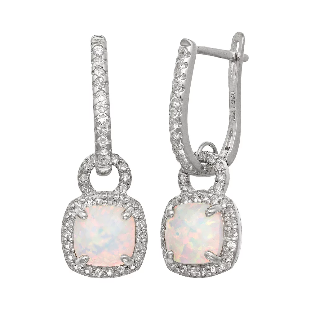 Adorned with lab-created opals and lab-created white sapphire stones, these drop earrings are absolutely dazzling.