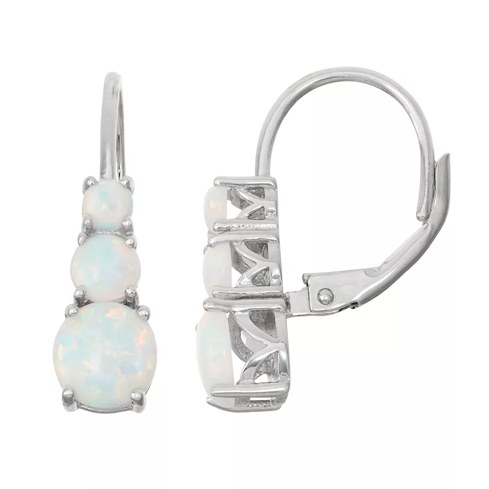 Decorated with beautiful lab-created opals, these sterling silver graduated drop earrings are sure to receive attention.
