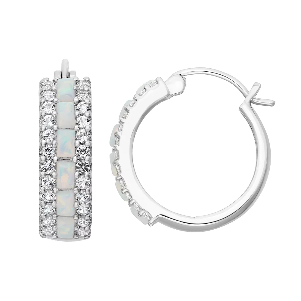 Elevate your ensemble when you add these lab-created opal and white sapphire hoop earrings to your look.