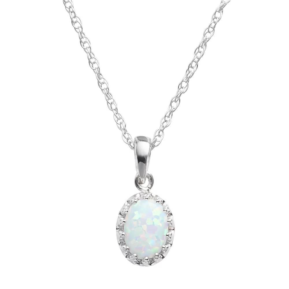 A beautiful lab-created opal adorns this sterling pendant for a glistening touch.