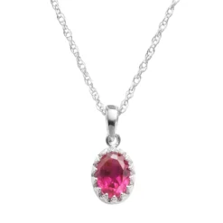 A lab-created ruby stone illuminates this sterling silver pendant for a look you’re sure to love.