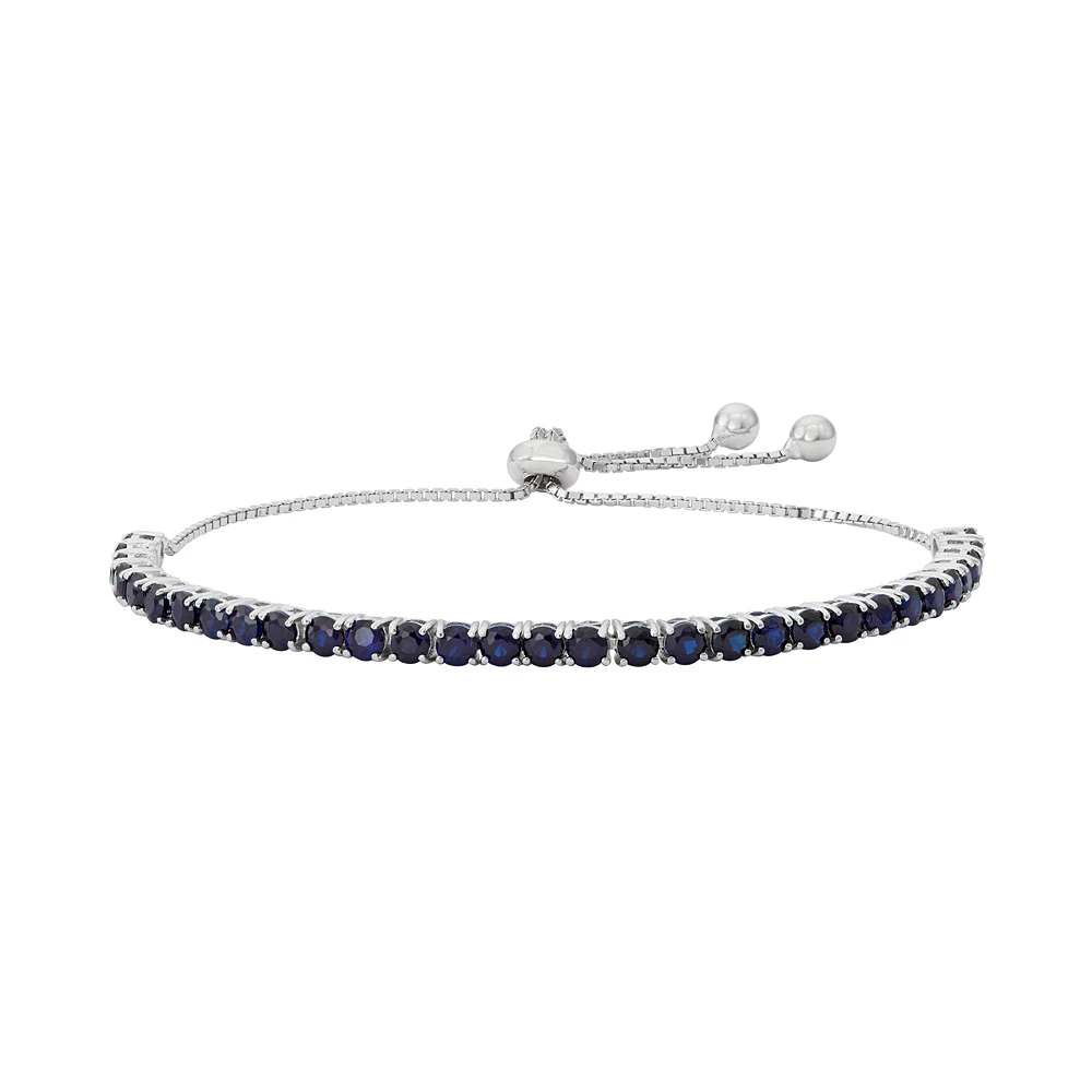 Adorned with round-cut, lab-created sapphire stones, this adjustable lariat bracelet abounds with elegant beauty.