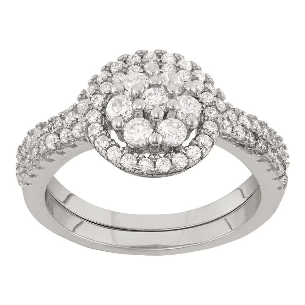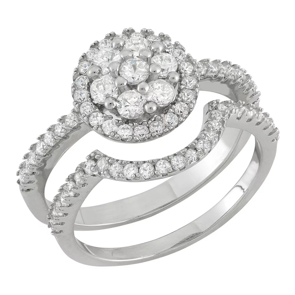 This set of sterling silver and lab-created white sapphire cluster rings will add an undeniable touch of dazzling style to your look.