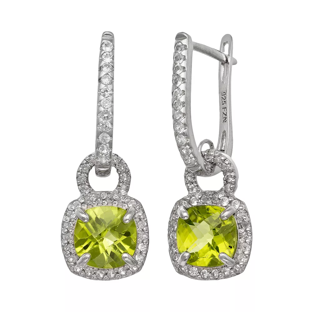 Adorned with peridot and lab-created white sapphire stones, these drop earrings are absolutely dazzling.