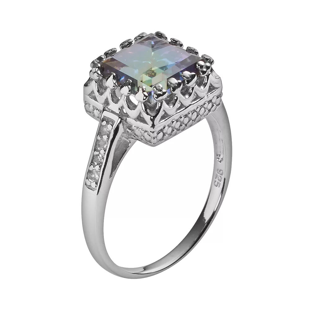 - Stone type: genuine rainbow blue quartz, lab-created white sapphire