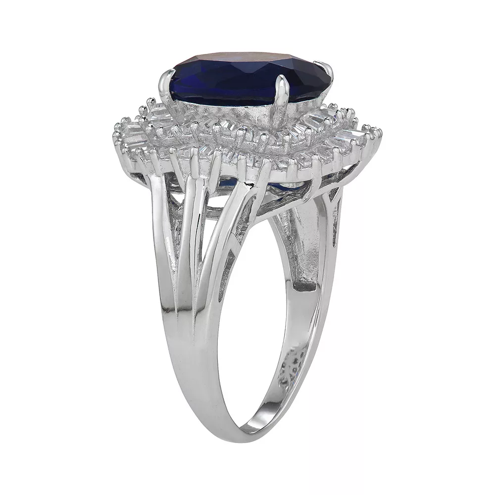Accessorize any look with this stunning sterling silver ring, featuring a gorgeous oval-cut simulated gemstone for alluring style.