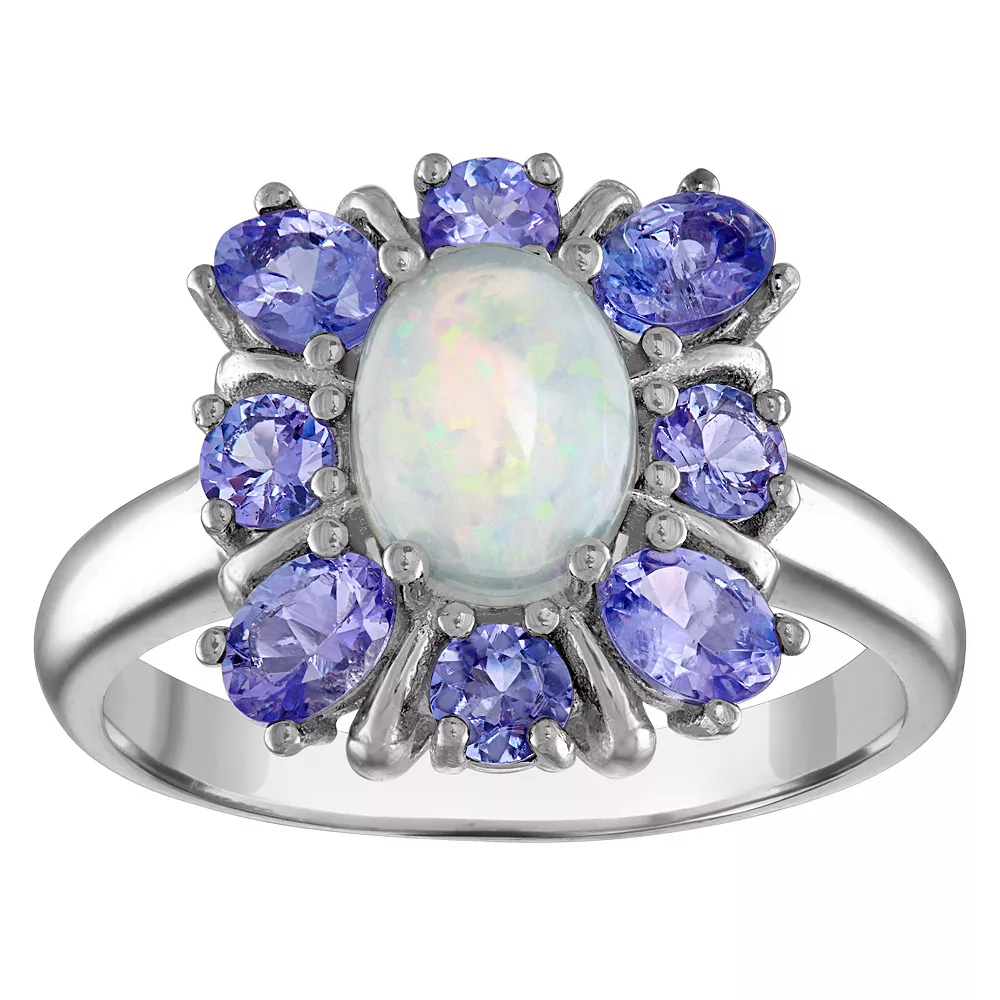Featuring white opal and tanzanite gemstones set in a flower motif, this Designs by Gioelli accents your wardrobe beautifully.