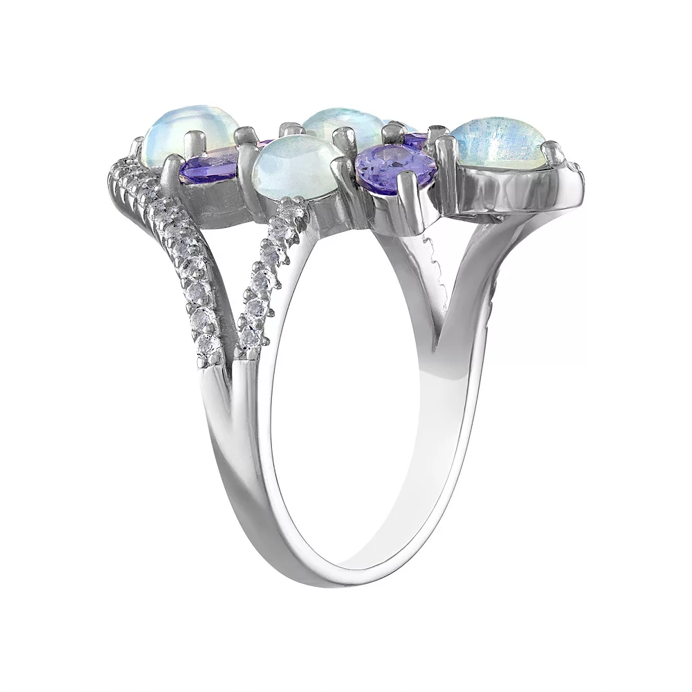 Adorned with oval-shaped white opal gemstones and tanzanite accents, this Designs by Gioelli ring is an elegant accessory for every occasion.