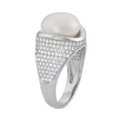 Designs By Gioelli Sterling Silver Freshwater Cultured Pearl And Lab-Created White Sapphire Ring